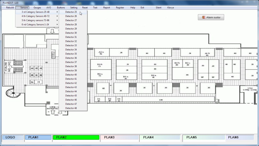 3.Kategori :PLAN2 dır.Bu pencereye 25 den 48 e kadar olan detektörler ve 12 adet kontrol butonu yerleştirilebilir,