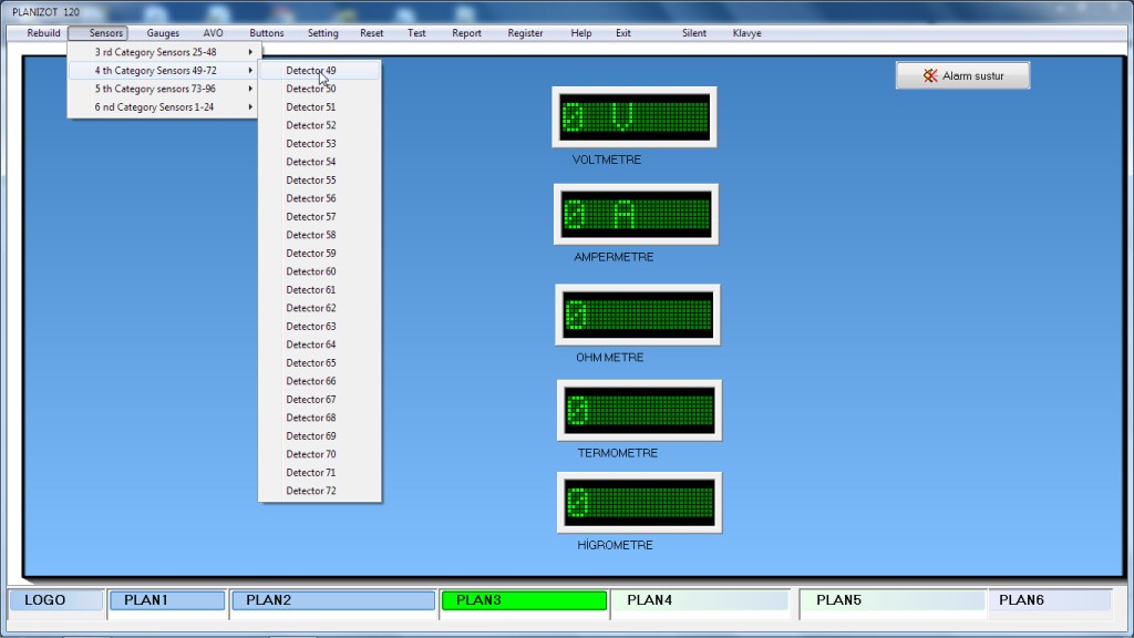 4.Kategori :PLAN3 dır.Bu pencereye 49 dan 72 ye kadar olan detektörler ve 8 adet termometre,ampermetre,voltmetre gibi analog cihazlar yerleştirilebilir.